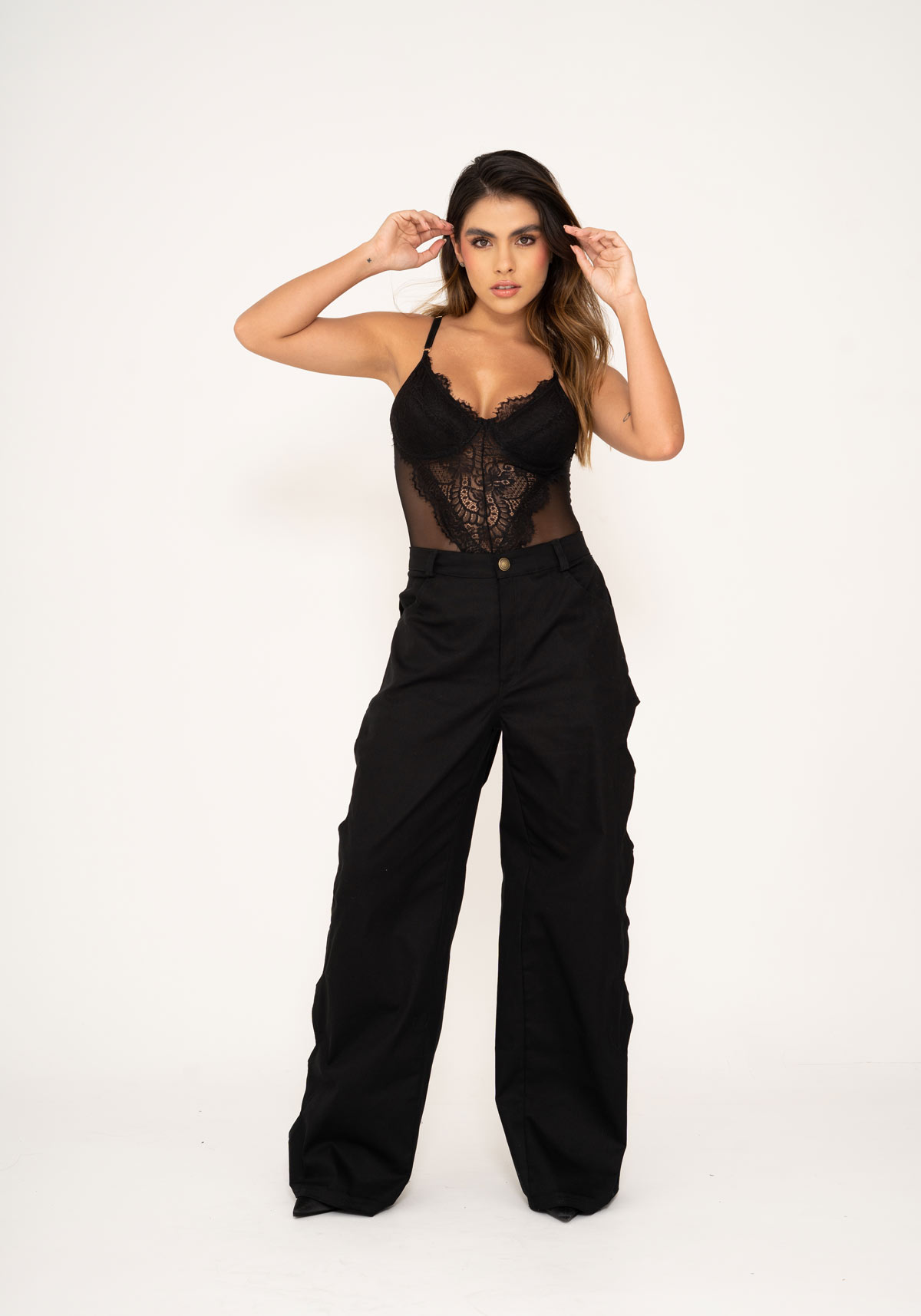 Pantalón de tiro alto y pierna ancha, con pliegue frontal. Elegante, fluido y versátil, ideal para looks sofisticados.